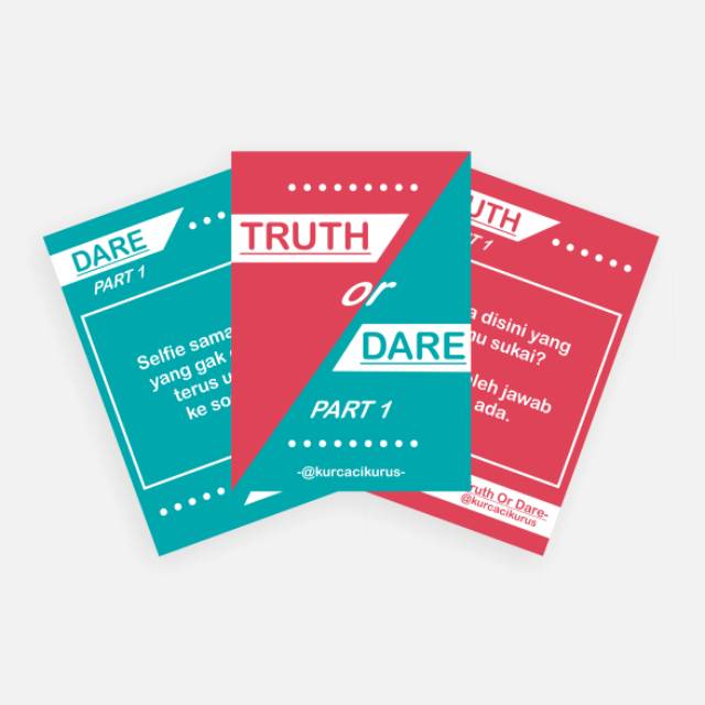 Sekarang tinggal buka internet saja! Banyak blogger, youtuber dan publik figure memainkan permainan ini. Cara mainnya pun sangat sederhana, yakni pemain diberi pilihan jujur atau tantangan yang ditentukan oleh pemain lain. For dares, ask the person requesting the dare to do something. The jawaban you'd get for these fun truth atau dare pertanyaan are bound to leave anda in splits.