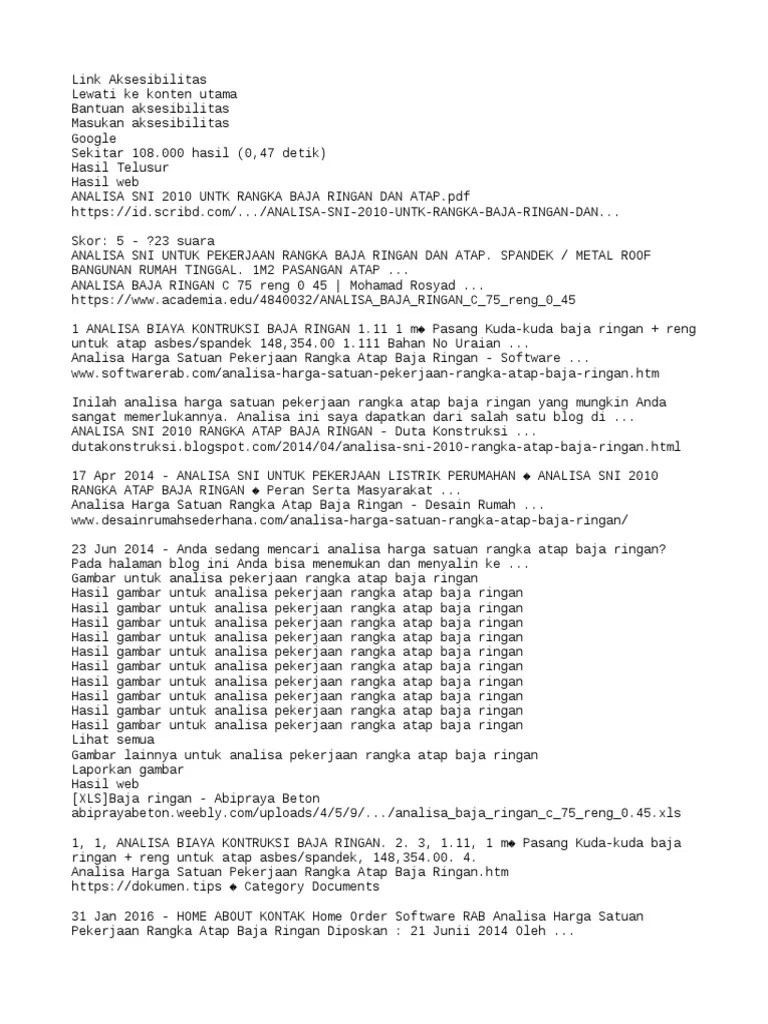 Analisa sni 2010 untk rangka baja ringan dan atap.pdf. Taso truss c75.100 dan pada sni 8399:2017 tentang profil rang a baja. Gambar 5.1 dimensi profil baja ringan. Pdf | kegagalan struktur rangka atap bangunan dapat mengakibatkan kerugian yang besar bagi pemilik bangunan serta mengancam keamanan dan keselamatan. Unduh perencanaan rangka atap baja ringan berdasarkan sni 7971:2013 pdf. Tugas akhir perencanaan rangka atap baja ringan berdasarkan sni 7971 : Spandek / metal roof bangunan rumah tinggal. Kuda atap adalah material baja ringan (light gauge steel). Seiring dengan perkembangan zaman, baja ringan semakin populer Analisa sni untuk pekerjaan rangka baja ringan dan atap. Abdul hasyim e1a supirman e1a sidratul ndise tanaka e1a. Konstruksi atap rangka baja ringan anggota kelompok : "hak cipta badan standardisasi nasional, copy standar ini dibuat untuk penayangan di www.bsn.go.id dan tidak untuk di komersialkan" sni 8399:2017 badan .